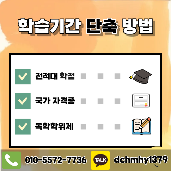 그래서 많은 분들이 학점은행제를 통해 필요한 과목만 쏙쏙 골라 이수하며 소방안전관리자2급 응시자격을 최단기간에 완성하고 있습니다.