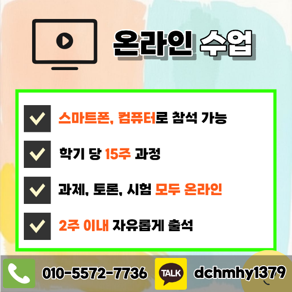 2) 이론 수업은 100% 온라인 강의로 진행