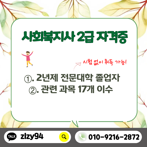 사회복지사2급 시험은 검정시험이 없으며 다음 조건만 충족하면 됩니다.