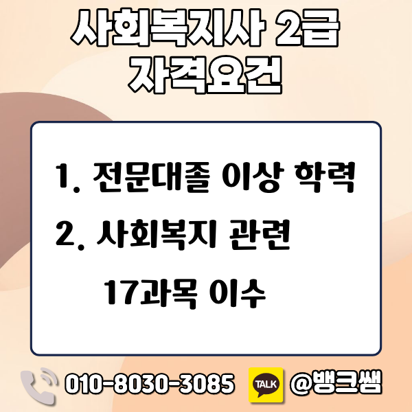 사회복지사2급 취득을 위해 확인해야 할 기본 조건은 다음 두 가지입니다.